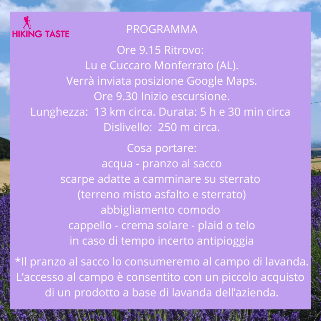 Data del 29 giugno disponibile. Link: TREKKING DELLA LAVANDA 29/06/2025